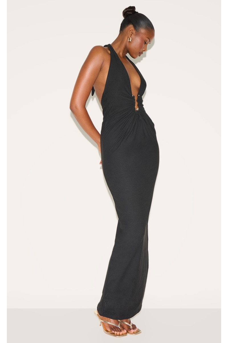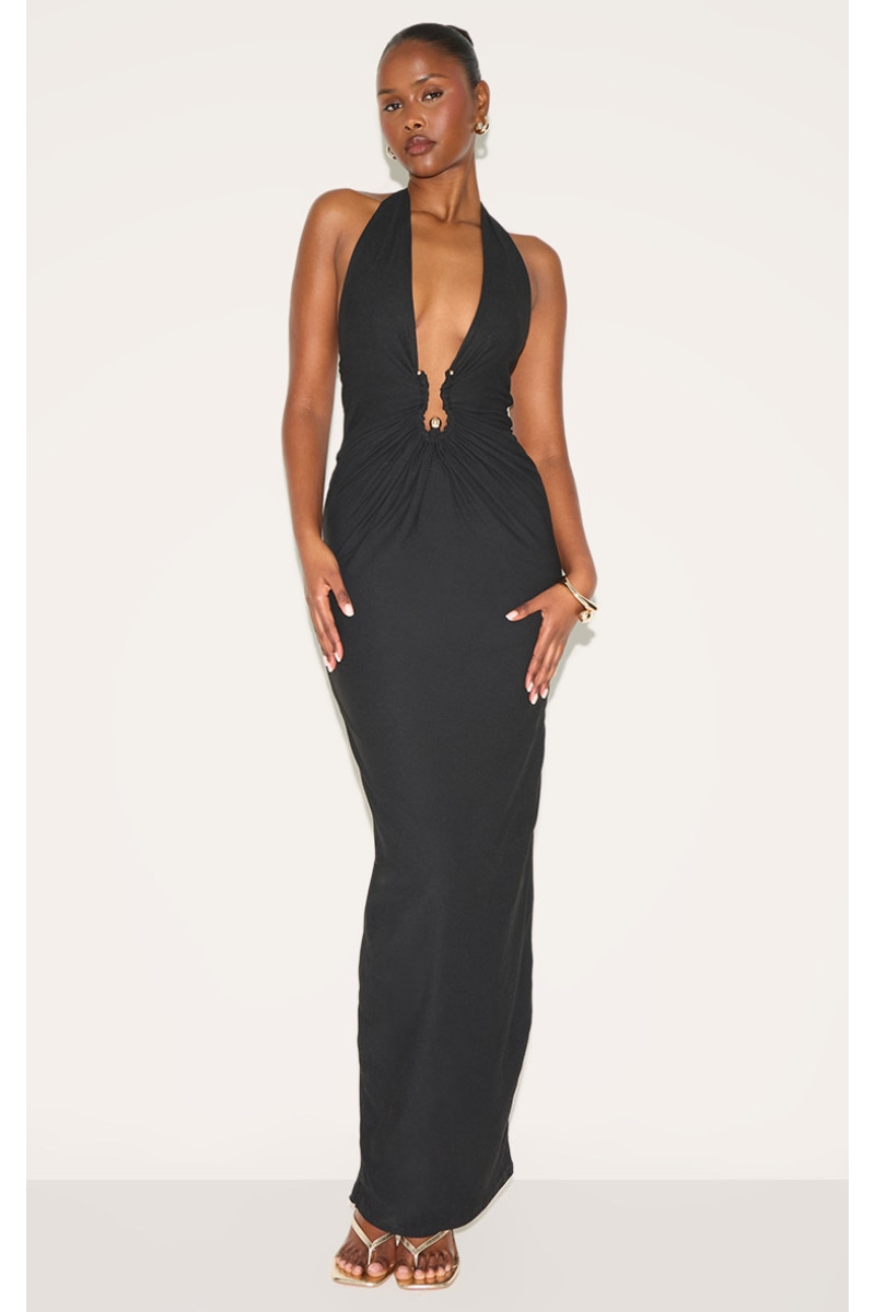 Виглядайте без особливих зусиль елегантно в цьому чорному подвійному шару м'якого дотику деталей для обробки максі. Розроблений у м'якому чорному матеріалі з тонкою деталізацією обробки та максі. Команда Це плаття з парою сандалів та золотих аксесуарів для елегантної обробки. Довжина приблизно 155 см/ 61 "(на основі розміру вибірки UK 8) Модель Sleevelescoccassion: Вечір