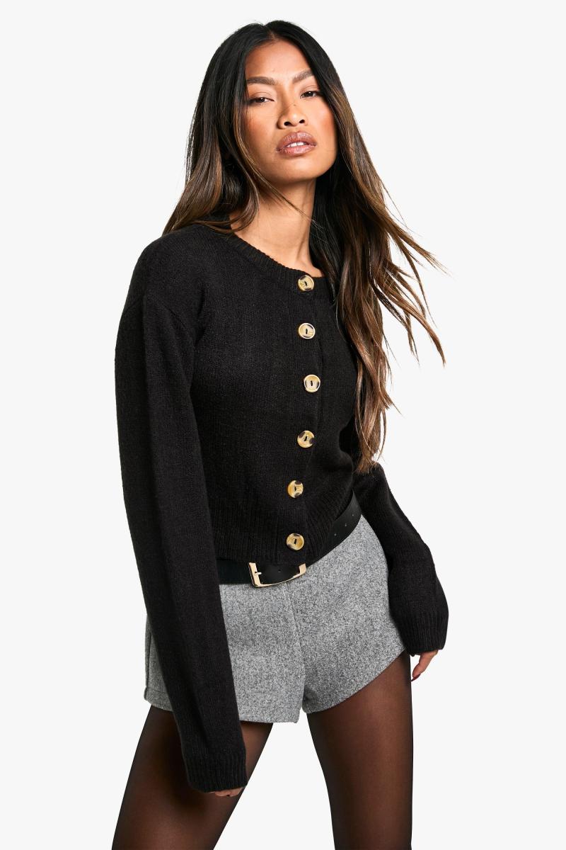 Екіпаж шиї з пуховими рукавами м'який трикотажний мікро кардиган