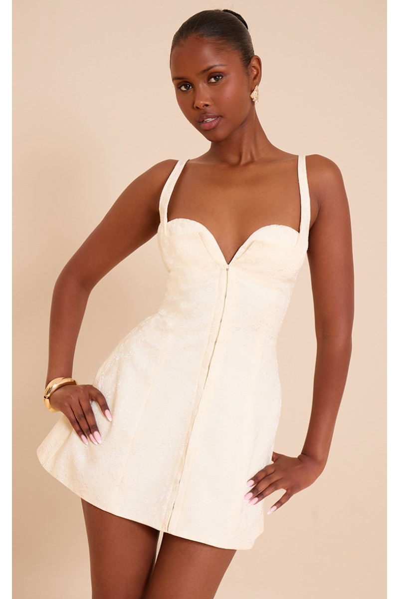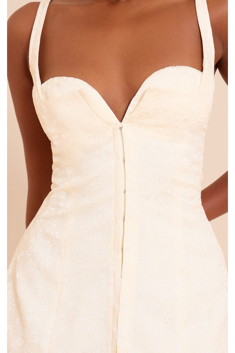 Майстерна структура відповідає впевненим рядам для редагування ваших видатних випадків. Кремова сукня з перемиканням жакартів і сукня з перемикання очей пропонує різке декольте з зануренням і точно підібраний ліф, який забиває талію, стікаючи у вишукану спідницю. Його виразний жакардовий візерунок додає глибину, тоді як переднє гачок і кріплення очей забезпечують унікальний фокус. Amplify its refined profile with sharp heeled mules and a minimalist clutch, ready to own every after-dark moment.Length approx 81.5cm/32" (Based on sample size UK 8)Model wears size UK 8/ EU 36/ AUS 8/ US 4Model Height - 5ft 9"Brand: PrettyLittleThingCategory: DressesProduct type: Shift DressColour: CreamMaterial: Woven JacquardNeckline: Plungesleeves: SleeVelessoccasion: Привід