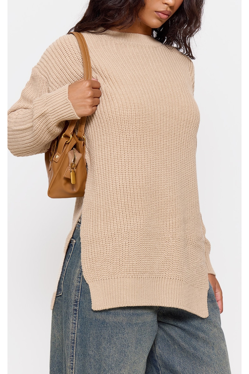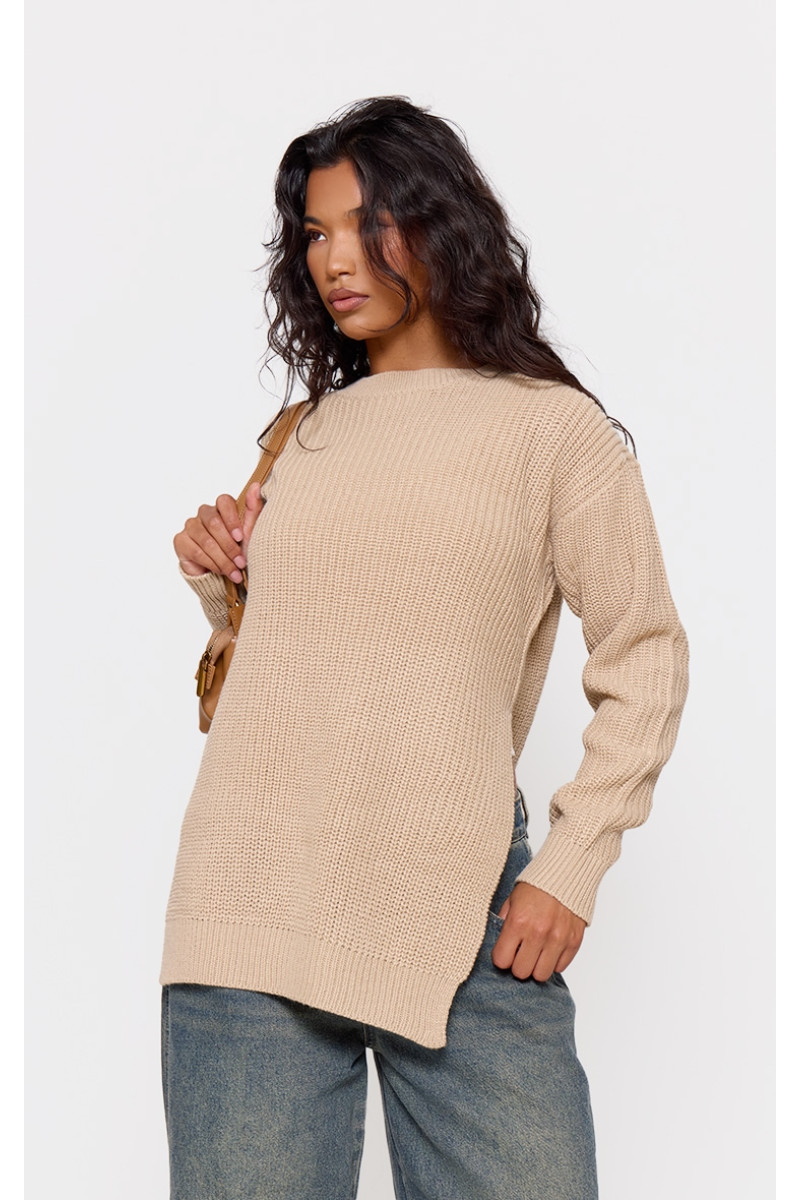 Джемпер із круглим вирізом із каменем і бічними розрізами