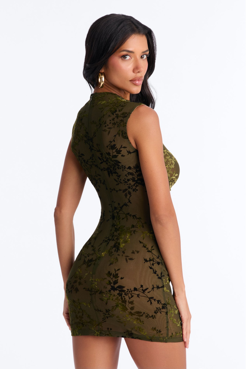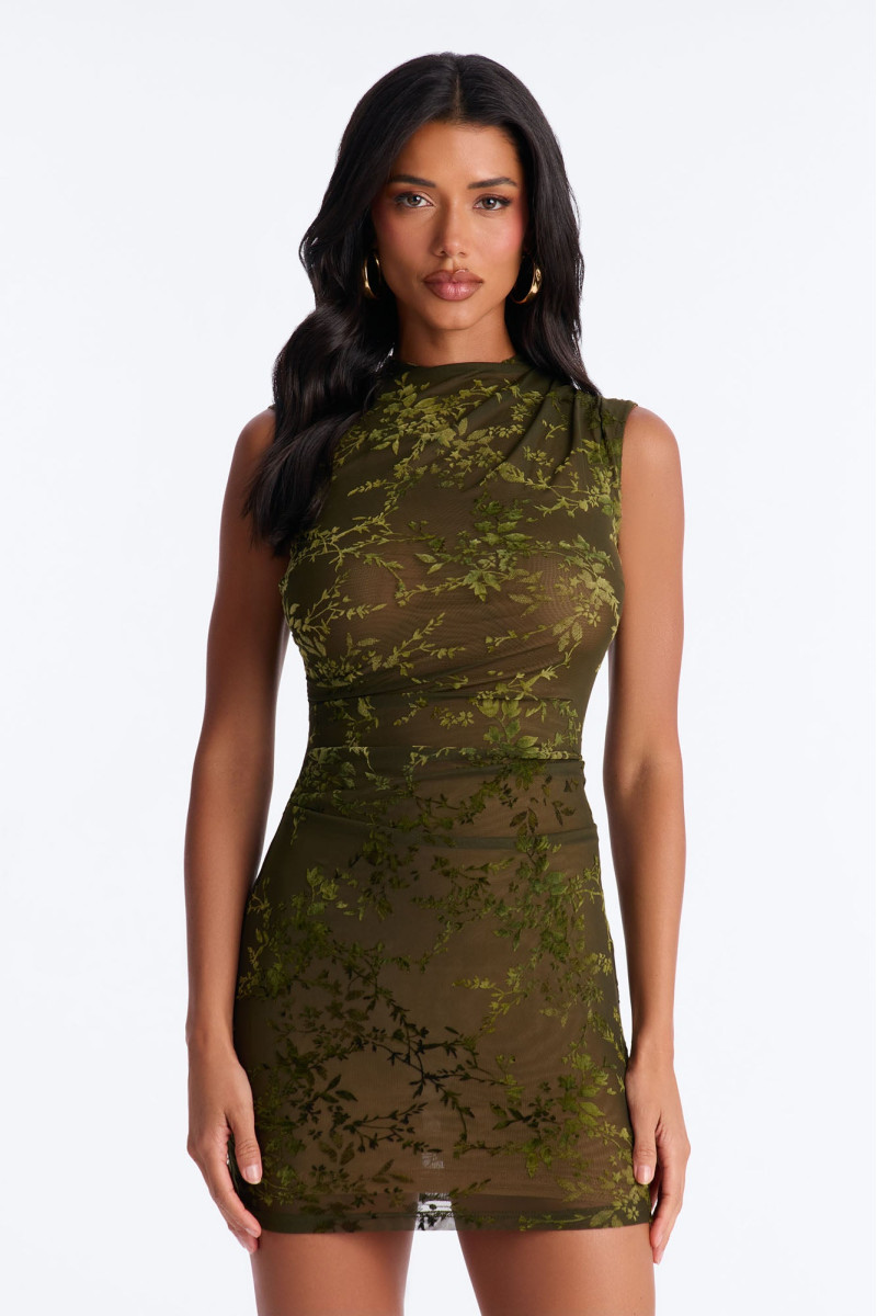 Відкрийте для себе вишуканість цієї сітчастої сукні міні, прикрашеної ніжним флоковим принтом "Магнолія". Легка текстура сітки в поєднанні з витонченим візерунком створюють елегантний та романтичний образ. Ця сукня ідеально підійде для особливих випадків або для створення вишуканого повсякденного вбрання.