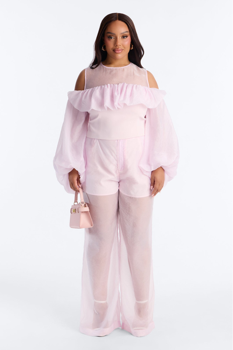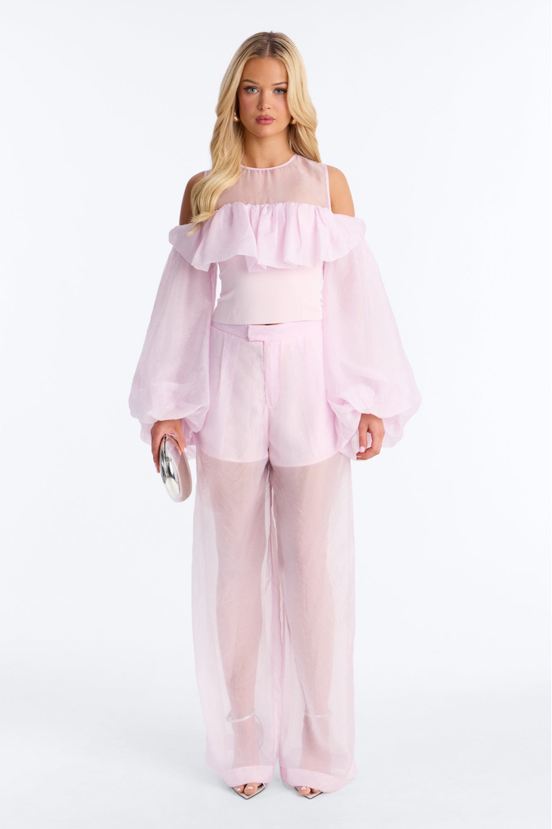 Ніжні та повітряні штани "Блоссом" з органзи додадуть вашому образу легкості та вишуканості. Прозора тканина створює ефектний вигляд, а вільний крій забезпечує максимальний комфорт. Ці штани стануть справжньою родзинкою вашого гардеробу.