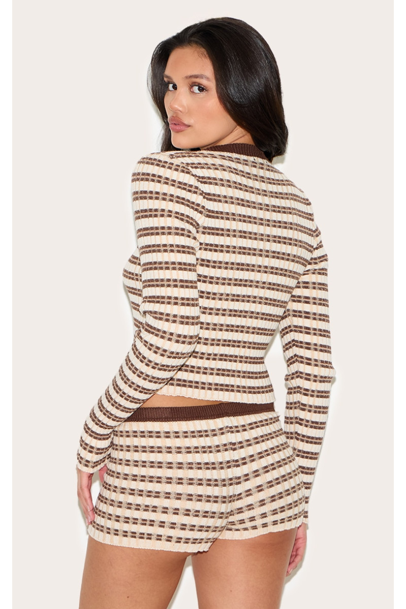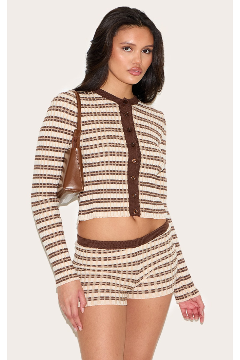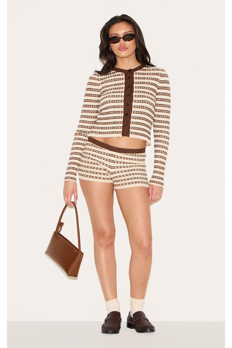 Виготовлений з шоколадного трикотажного матеріалу з шикарним дизайном смужки, довгим рукавом підходить та деталізацією кнопки. Pair this chocolate stripe knitted cardigan with the matching hot pants and a shoulder bag for a fool proof finish we are loving.Length approx 48.5cm/19" (Based on sample size S)Model wears size SModel Height - 5ft 7"Brand: PrettyLittleThingCategory: KnitwearProduct type: CardiganColour: ChocolateMaterial: Brushed KnitDesign: PrintNeckline: CrewSleeves: Лонгоксіція: день